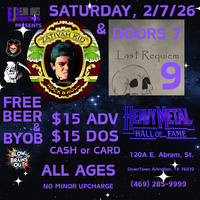 ZATIVAH KID https://www.facebook.com/profile.php?id=100063636512552 & LAST REQUIEM https://www.facebook.com/profile.php?id=61578220449956 $15 ADV - $15 DOS (CASH or CARD) SEE TICKET LINK FOR ADV TIX FREE BEER - BYOB ALL AGES - NO MINOR UPCHARGE DOORS 7 - SHOW 9 SET TIMES: LAST REQUIEM 9-10 ZATIVAH KID 10:30-???? The HALL WILL OPEN at 7.. Ppl are welcome to VIEW the DISPLAYS & EXHIBITS FROM 7-9. LAST REQUIEM BEGINS at 9. The HALL CLOSES at the END OF ZATIVAH KID. ONLY 50 Tickets are AVAILABLE for this EVENT.. GET YOUR TIX ONLINE. We WILL ONLY SELL TIX at the DOOR IF WE DO NOT SELL THE 50 ONLINE. The HALL will open at Different TIMES on DIFFERENT DATES, but WE WILL ONLY HAVE LIVE BANDS on SATURDAY NIGHTS EXCEPT for SPECIAL EVENTS & WE WILL HAVE LOTS of SPECIAL EVENTS.. ELMO JONES PRODUCTIONS & HEAVY METAL HALL of FAME: (469) 285-9999 |